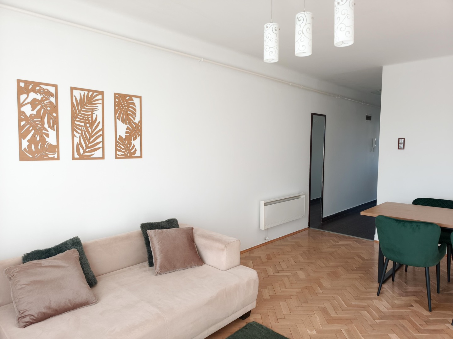 Előszoba, nappali, hálószoba, fél szoba, konyha, fürdőszoba, WC, tágas 8 m2-es erkély